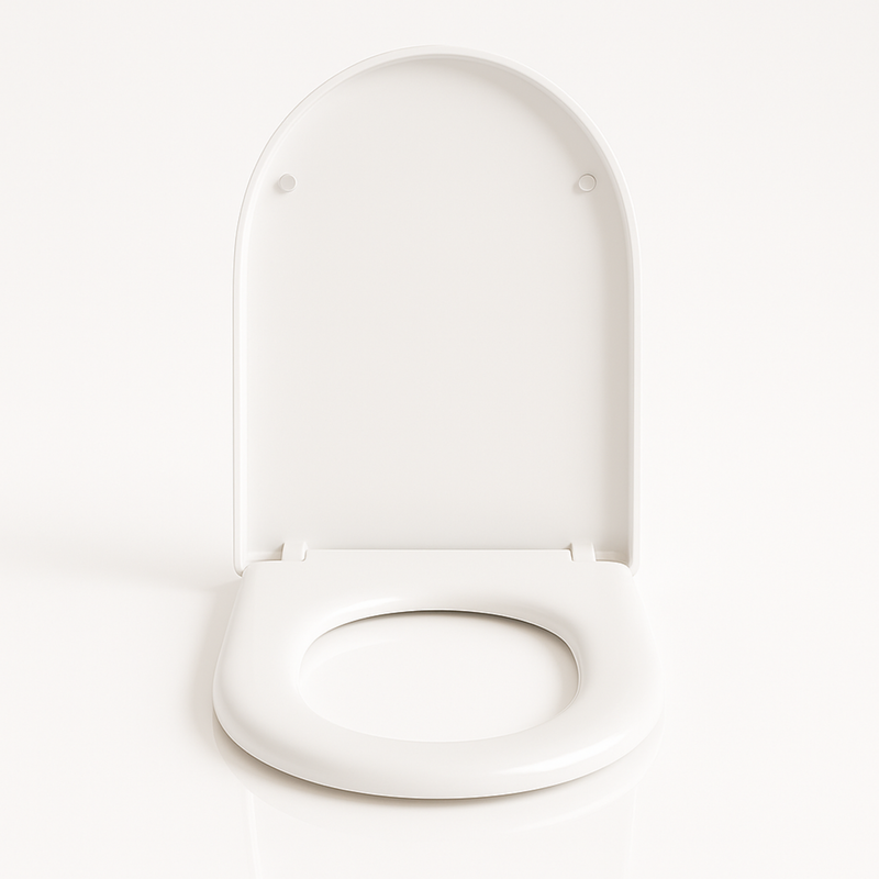 Quiet soft-close seat with quick-release for easy cleaning and a modern D-shape.