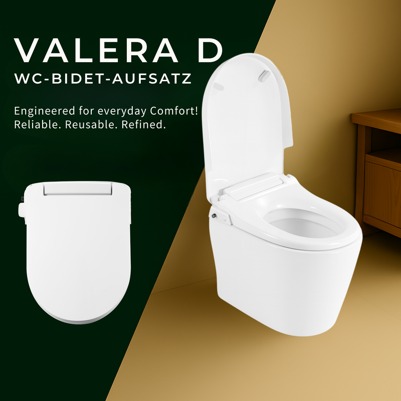Upgrade your toilet in minutes with the VALERA D — a slim, non-electric bidet seat shaped for D-style bowls. Dual retractable nozzles (rear & feminine) deliver a gentle, adjustable wash, while the self-clean cycle rinses nozzles before and after use. A soft-close seat and lid, quick-release hinges, and a smooth side dial make everyday hygiene cleaner and easier.
